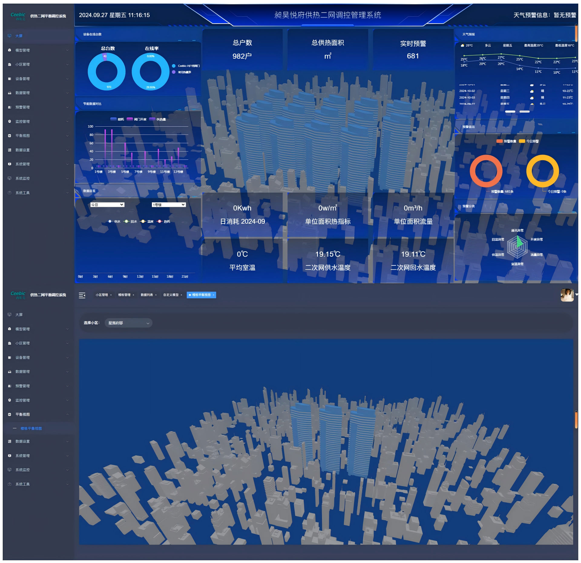 2、实时监控用户和楼宇供回水数据,掌握二次热网运行状态。
